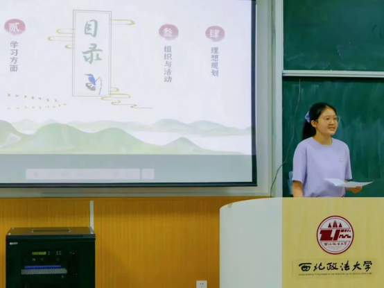在AJ12教室举办新老生见面会暨学习经验交流会,学院团总支书记、2023级辅导员苏芝双主持会议。
