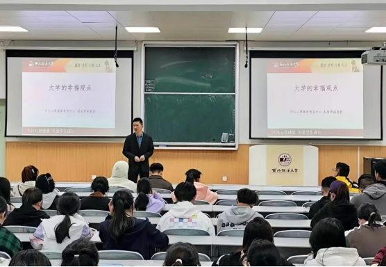 讲座伊始,团总支书记苏芝双介绍了讲座主题,基于同学们面对诸多压力时易在思维、情感上产生心理问题的现状,他呼吁大家关注心理健康,走出心理误区,引导同学们拒绝内耗、悦纳自我。