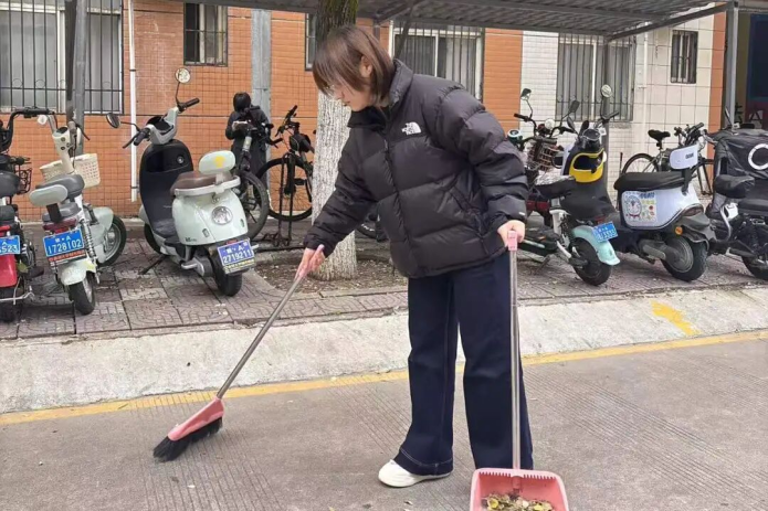 活动期间,同学们分工明确、通力协作,对主干道绿化带及公寓周边卫生死角展开了清理。大家手持清洁工具,认真清扫路面落叶,细致捡拾绿化带内垃圾,用心擦拭公共设施表面。同学们用实际行动诠释了吃苦耐劳、勤勉务实的精神品质。经过有序高效的集体劳动,校园环境焕然一新,公共区域整洁有序。