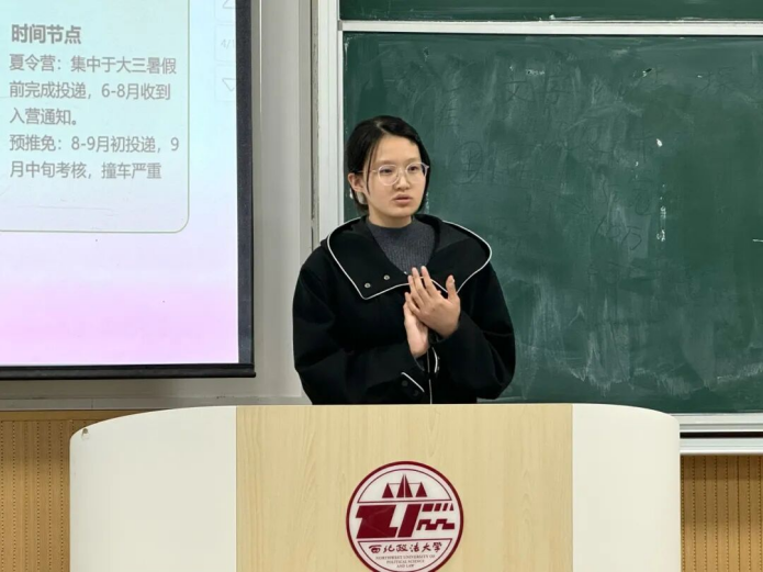 为精准对接学生深造发展需求,充分发挥优秀学长学姐的朋辈引领与榜样示范作用,帮助同学们科学规划学业路径、明晰职业生涯方向,11月12日,皇冠体育官网 举办推免经验交流分享会,2022级王子铭、董兆祥、曾小妹、史佳怡主讲,2023级全体学生积极参加