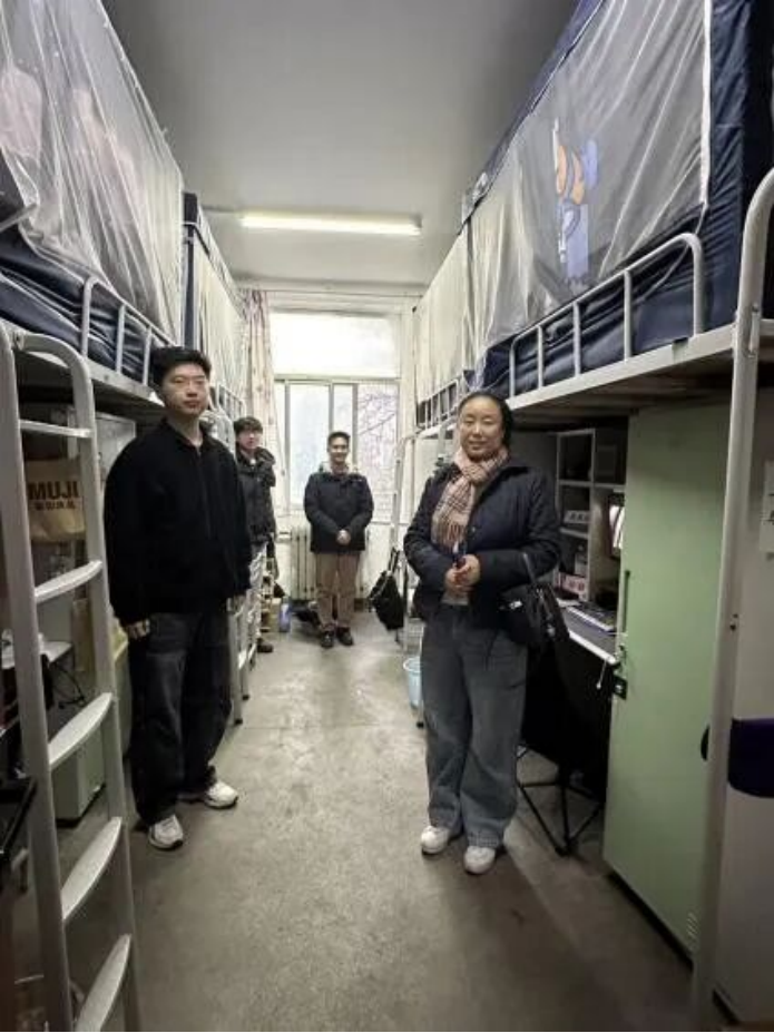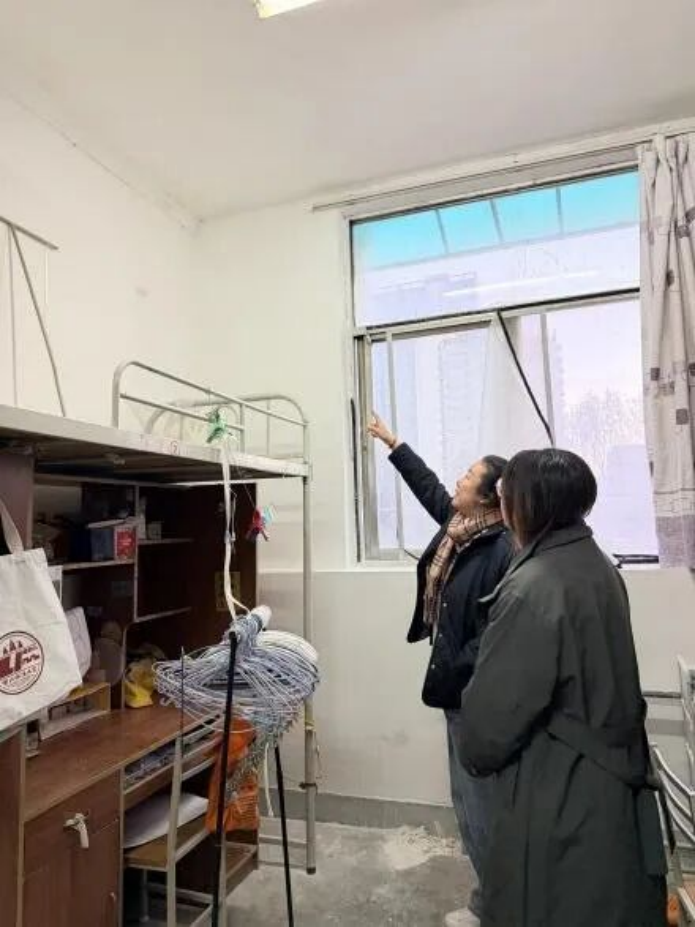 检查期间,何珊逐一走访学生宿舍,认真查看宿舍卫生环境与物品整理情况,重点排查违规电器、乱拉电线、充电安全隐患等问题,并现场指出、督促整改。她反复强调保持宿舍整洁、遵守用电规范的重要性,提醒同学们牢固树立“安全第一”的思想。何珊还与即将离校的学生亲切交谈,叮嘱大家离校前妥善收纳贵重物品、切断电源、锁好门窗,并围绕返乡途中的交通安全、财物保管、防范诈骗以及假期期间的网络文明、健康防护等事项进行了温馨提醒,倡导同学们合理安排行程,增强自我保护能力,确保平安返乡、充实度假。