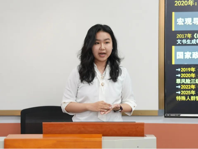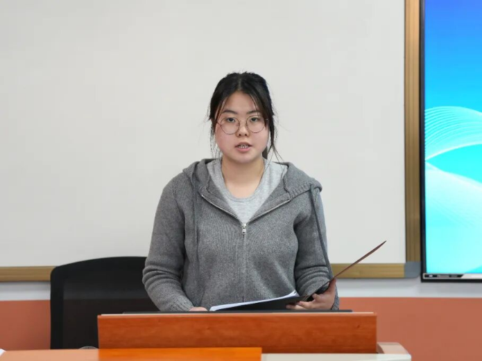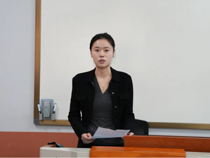 答辩开始前,黄思齐围绕“挑战杯”赛事评审标准,向各参赛团队详细介绍了本次答辩的评分要点与注意事项。她重点从项目选题的时代性、研究思路的创新性、成果应用的可行性,以及现场答辩的表达清晰度与表现力等维度进行解读,帮助参赛团队明确展示重点与答辩规范,并鼓励同学们沉着自信、充分展现风采。