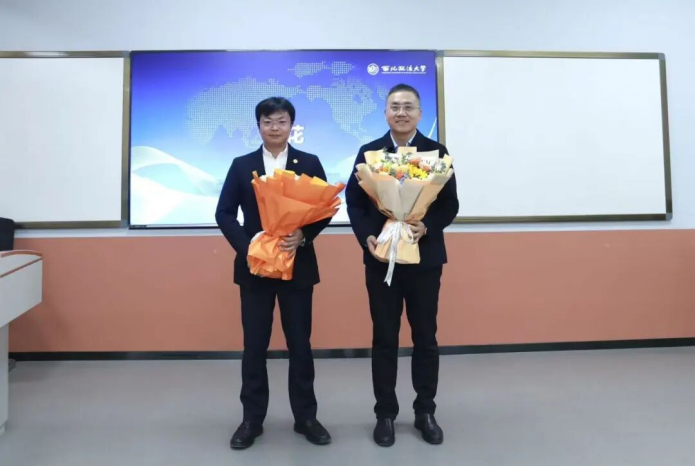 仪式最后,学生代表为亿杰控股集团来宾献上鲜花,以最真挚的方式表达对企业关怀的感谢与敬意。这份感恩将化作前行的动力,激励着每一位学子在法治道路上勇毅担当,用实际行动回馈社会的信任与期许。