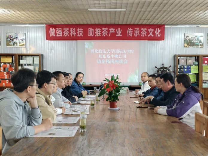 陕西东裕生物科技股份有限公司相关负责人对学院一行的到访表示热烈欢迎。交流中详细介绍了企业发展历程、产业布局与品牌建设成果,并围绕茶叶品牌知识产权保护、涉外贸易合规、农产品质量安全及合同管理等方面的法律难题进行说明,希望依托高校涉外法治研究优势协同破解难题。吕江结合企业经营实际逐一回应,为企业规范运营、防范化解法律风险提供专业指导。