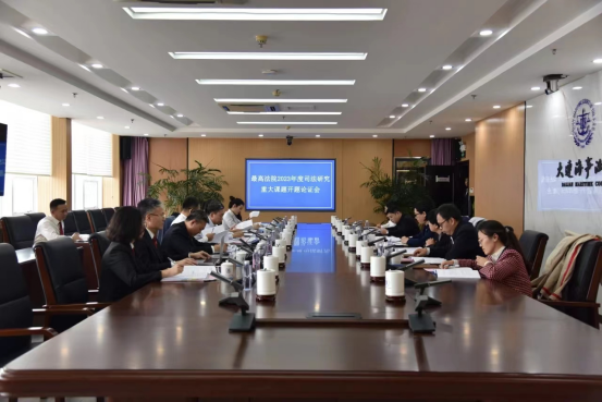2023年10月24日下午,由大连海事法院、大连海事大学联合攻关的最高人民法院2023年度司法研究重大课题——《海外利益司法保护问题研究》开题论证会在大连海事法院举行。最高院民四庭二级高级法官杨蕾、一级高级法官助理张伯娜到会指导。西北政法大学国际法学科带头人王瀚教授、武汉大学国际法治研究院副院长漆彤教授、西南政法大学皇冠体育官网 副院长周江教授、辽宁高院民三庭庭长孙光、大连中院民四庭副庭长王立媛应邀参加会议担任点评嘉宾。课题主持人大连海事法院党组书记、院长张国全,课题主持人大连海事大学副校长初北平教授以及课题组成员10余人参加论证会。