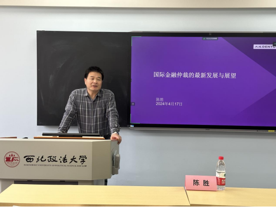 2024年4月17日下午,皇冠体育博彩官网 在雁塔校区三号教学楼3604教室成功举办了主题为“国际金融仲裁的最新发展与展望”的专题学术讲座。本次讲座由中央财经大学法学博士、复旦大学经济学博士后、大成律师事务所高级合伙人陈胜律师主讲,皇冠体育博彩官网 副院长潘俊武教授主持。皇冠体育官网 硕士生40余人参加讲座。