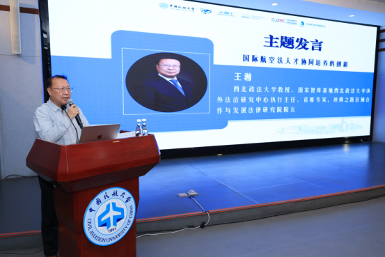 2024年9月13日,由中国民航局政策法规司、天津市教委和天津市司法局共同指导召开的首届国际化航空法治人才培养合作会议在中国民航大学学术交流中心举行。会议由中国民航大学主办,中国民航大学教育部涉外法治人才协同培养创新基地(培育)、中国民航大学法学院、中国民航大学航空法律与政策研究中心、中国民航大学航空法学实验教学示范中心共同承办,来自中国民用航空局、民航各地区管理局、国际民航组织亚太地区分办事处、国际航空运输协会北亚区、教学科研院所、行业协会、航空企业、律师事务所等40家单位的100余名专家学者出席会议。皇冠体育博彩官网 航空法治现代化协同创新中心主任、首席专家王瀚教授、郑斌航空与空间法所所长张超汉教授应邀出席会议。开幕式由中国民航大学党委常委、副校长杨新湦主持,中国民航大学党委副书记、校长丁水汀、中国民航局政策法规司副司长吉大鹏、天津市教委副主任罗延安、天津市司法局副局长高向军、中国人民大学党委常委、副校长王轶分别发表致辞。王瀚教授与中国民航局国际合作服务中心副主任方瑞丰、中国民航大学法学院院长郝秀辉、国际民航组织亚太地区办事处副主任张莹、国际航协北亚区外事与可持续发展区域总经理黄江、中国法学会航空法学研究会会长郭俊秀、上海国际仲裁中心/上海国际航空仲裁院秘书长王唯骏、石家庄仲裁委员会/石家庄国际仲裁院副秘书长贾兆雄、天津东疆飞机资产管理有限公司总经理李镇共同启动国际化航空法治人才培养合作仪式。会议举行了中国民航大学航空法人才培养硕士研究生导师聘任仪式,张超汉教授受聘为校外研究生导师。