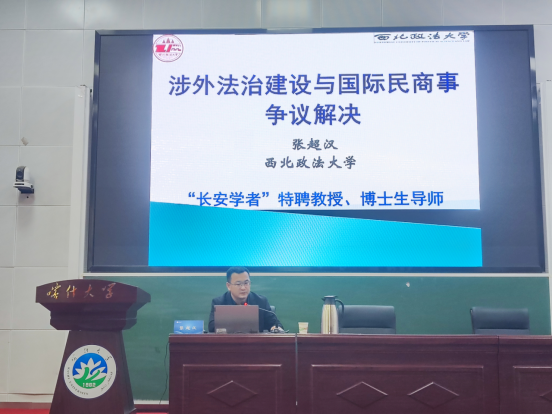 2025年3月23日,新疆自治区“学习贯彻习近平法治思想 加强涉外法治建设 服务新疆自贸试验区高质量发展”专题研修班在喀什大学开班。皇冠体育博彩官网 涉外法治研究中心副主任张超汉教授受邀为研修班授课。
