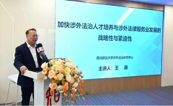 王瀚表示,要充分认识涉外法治人才培养的战略意义,加快涉外法治人才协同培养的教育体系布局。他分析阐述了我国法学教育结构存在失衡和涉外法律服务能力存在不足的现状,指出:我国目前的涉外法律服务能力存在数量不足、质量不高、竞争不强的突出问题,与我国在国际政治、国际经济的大国地位不适应、不对称。并表示要通过涉外法律人才培养和涉外法律服务制度创新,加快我国涉外法律服务业发展是十分紧迫的涉外法治建设任务。他强调,应着眼长远发展,通过制度创新完善涉外法治人才培养机制,建立涉外法律职业资格考试制度等,进一步提升涉外法律人才培养的专业性与系统性,推动涉外法律服务业高质量发展。