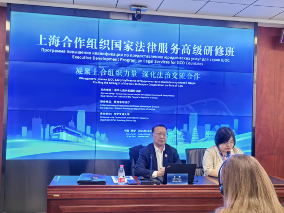 11月17日至28日,由中国司法部主办的上海合作组织国家法律服务高级研修班在陕西西安顺利举办。来自伊朗、吉尔吉斯斯坦、巴基斯坦、俄罗斯、乌兹别克斯坦、蒙古等国的司法部局处级官员参加了研修班。司法部党组成员、政治部主任黄祎出席研修班结业式并致辞。陕西省人民政府副省长戴彬彬、西安交通大学党委书记卢建军出席结业式。