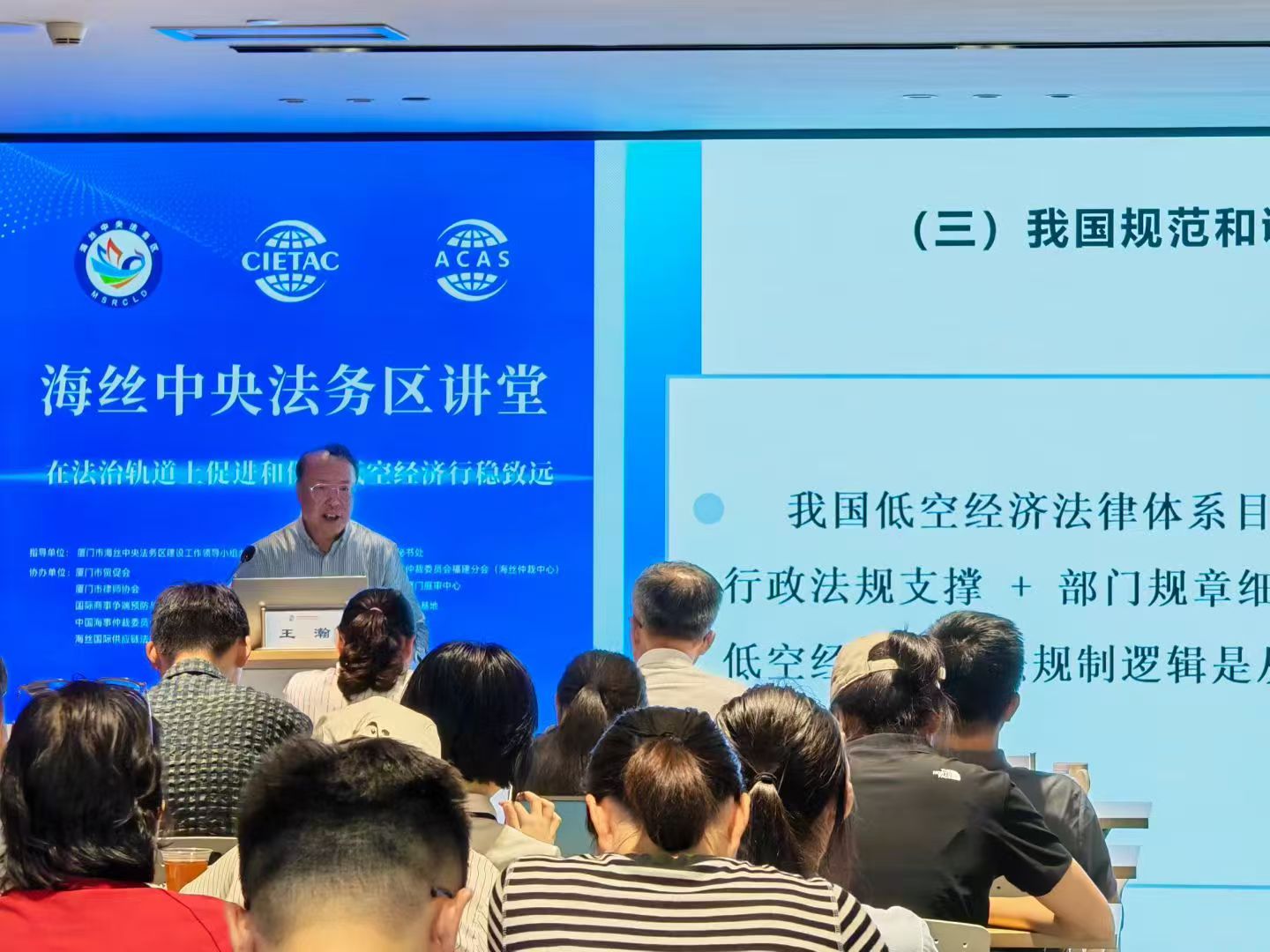 随着我国低空经济的快速发展,新修订的《民用航空法》将于今年7月1日实施,首次增设“低空经济发展促进”专章,将低空经济正式纳入法律体系。这一发展对相关法律服务的跟进提出了新要求。2026年4月29日,海丝中央法务区讲堂特邀西北政法大学原副校长、西北政法大学中国低空经济法治研究院院长、最高人民法院国际商事专家委员会委员王瀚教授,就低空经济相关法律问题进行了专题讲解。