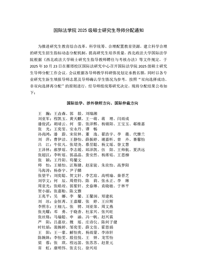 皇冠体育官网 2025级硕士研究生导师分配通知